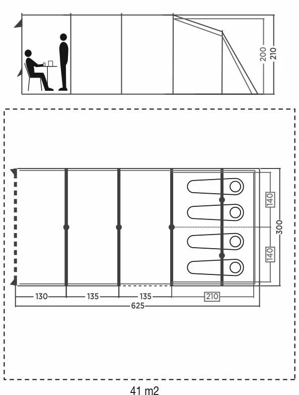 - Blackout Bedrooms – help to remove 99% of light from entering the sleeping compartment – the darkest sleeping compartment on the market. Keeps tent 5 degrees cooler during the day, and 1 degree warmer on an evening