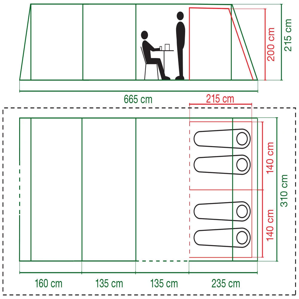 Ideal for couples and smaller families, the Valdes 4xl is a superb tent with Blackout Bedrooms, an inflatable design, and a three-zone design for families needing versatile living space. The inflatable design of the tent allows for it to be pitched within 10 – 15 minutes, and offers a strong tunnel design, with a large open front porch, integrated living space, and Blackout bedrooms compartments for a much better night’s sleep.