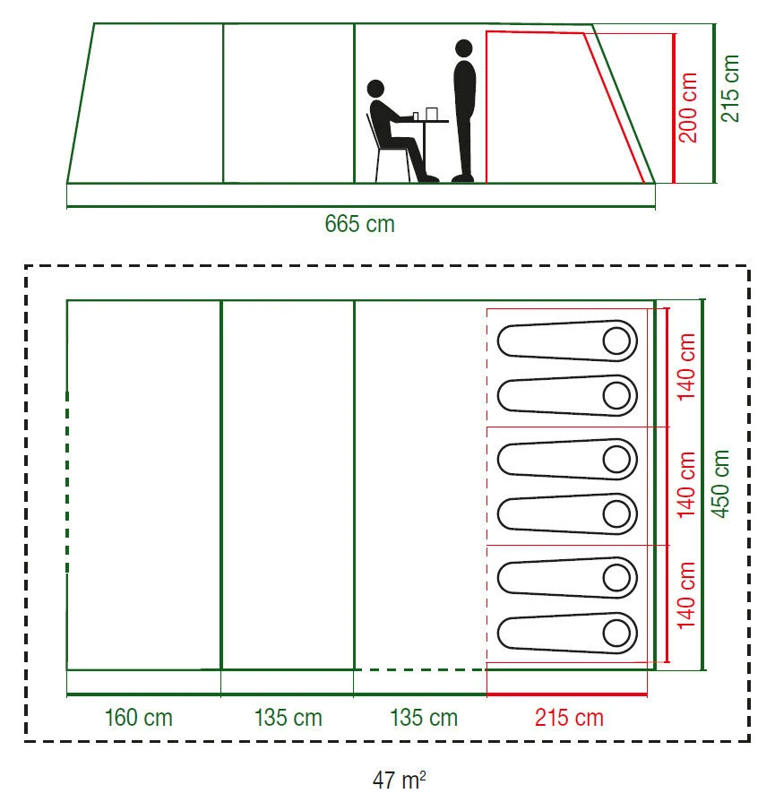 The Coleman Weathermaster 6xl is a large, dynamic family tent, with space to sleep six people, great living space and standing height and 235cm depth bedrooms.